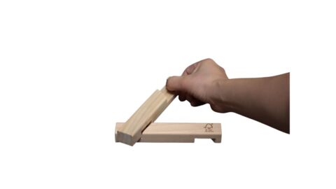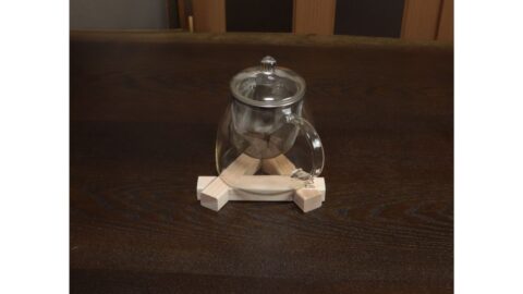 Two wooden pieces come together to form a trivet in seconds.