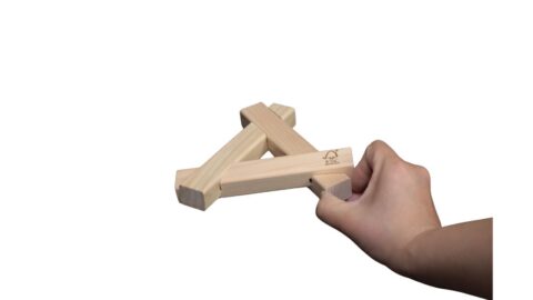 Three wooden pieces easily assemble into a trivet.